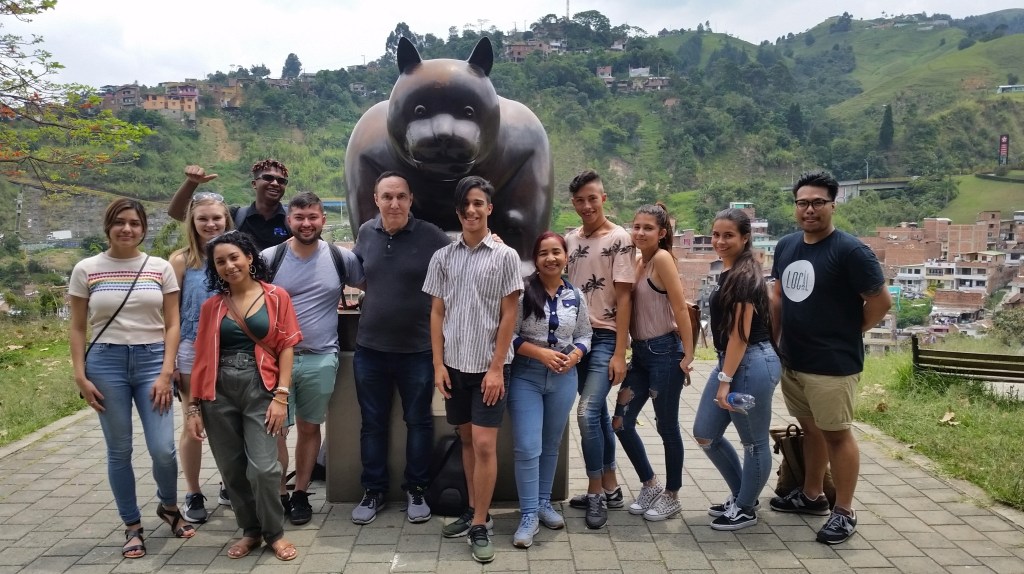 El programa Real World Connections de Osama Eljabiri de NJIT ofrece oportunidades educativas a estudiantes de secundaria en los EE. UU. y en el extranjero. En la imagen, los estudiantes participaron en una sesión reciente en Medellín, Colombia.